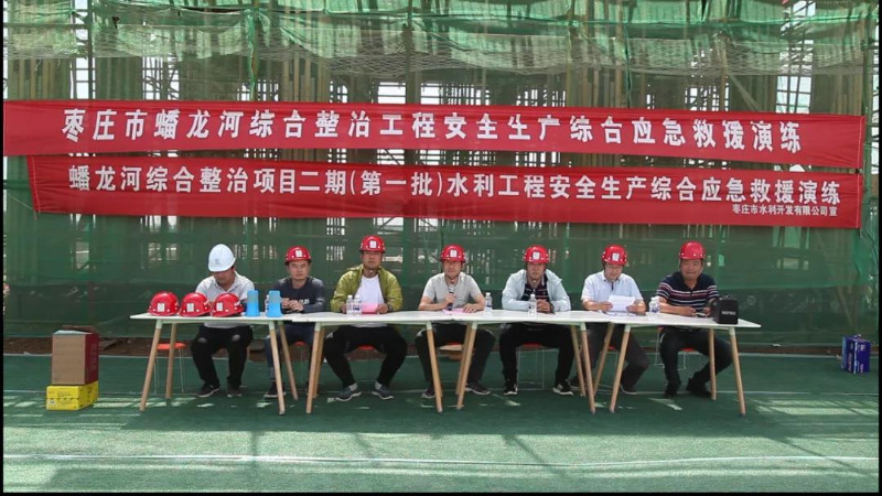 現場指揮劉志國最后總結,他表示,這次演練是對我們前期工作的總結和檢驗,同時更是一個新的起點,我們必須以這次演練活動為契機,認真總結經驗,及時發現問題和不足。他強調,一是要將本次演練與安全生產活動月相結合,擴大宣傳,營造濃厚的安全氛圍,牢固樹立紅線意識,落實安全責任,推動安全發展。二是要把應急預案和演練緊密結合,通過不斷演練,鍛煉隊伍,打造招之能來,來之能戰,戰而必勝的強有力保障隊伍,確保蟠龍河綜合整治工程安全生產形勢的持續穩定向好發展。