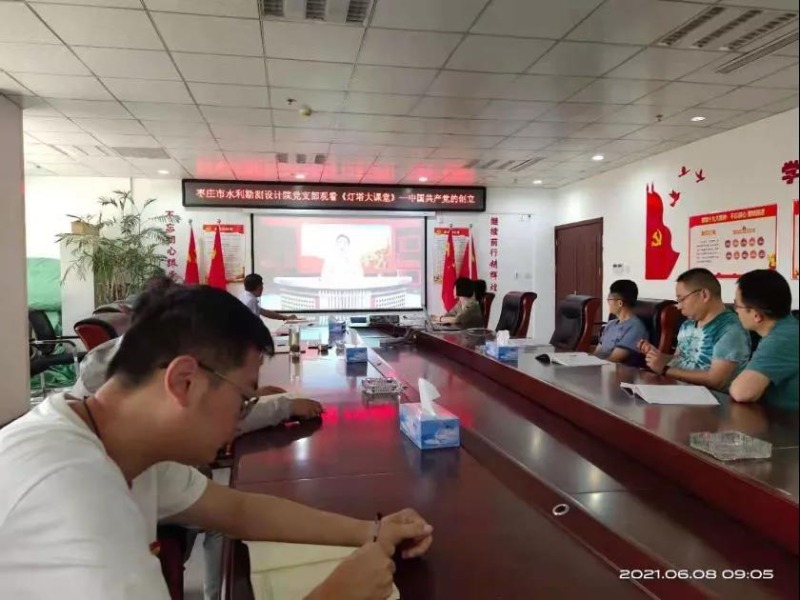 6月8日,棗莊市水利勘測設計院黨支部在支部書記趙勝同志主持下,觀看了燈塔大課堂第二十一課《中國共產黨的創立》。