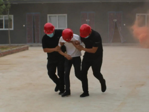 下午,在指揮部院內(nèi)組織開(kāi)展了事故應(yīng)急實(shí)戰(zhàn)演練。安全巡查員于演練現(xiàn)場(chǎng)發(fā)現(xiàn)事故后,立即通知安全管理組成員趕赴事故現(xiàn)場(chǎng),組織公司人員有序逃生至安全區(qū)域;消防人員及時(shí)到達(dá)事故現(xiàn)場(chǎng),迅速將火源撲滅,成功解救被困人員并為傷員進(jìn)行包扎。整個(gè)演練過(guò)程中,發(fā)現(xiàn)安全事故、報(bào)告情況、處理事故、安全逃生等事項(xiàng)均符合程序規(guī)定,參與人員應(yīng)對(duì)冷靜沉著,行動(dòng)迅速有序,活動(dòng)有聲有色。