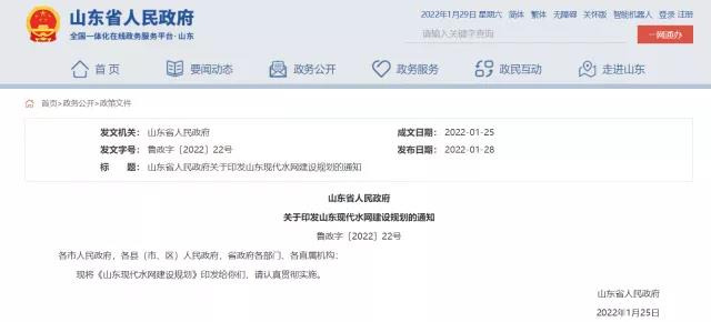 山東現代水網建設規劃出臺:構建“一軸三環、七縱九橫、兩湖多庫”總體格局
