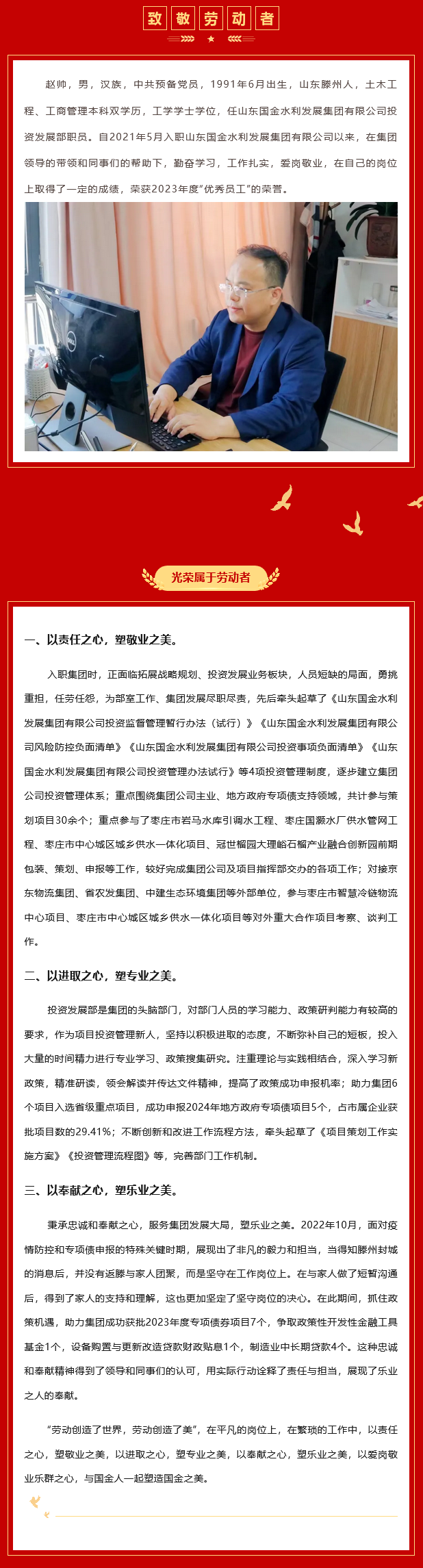 “最美國金勞動者”個人事跡——趙帥